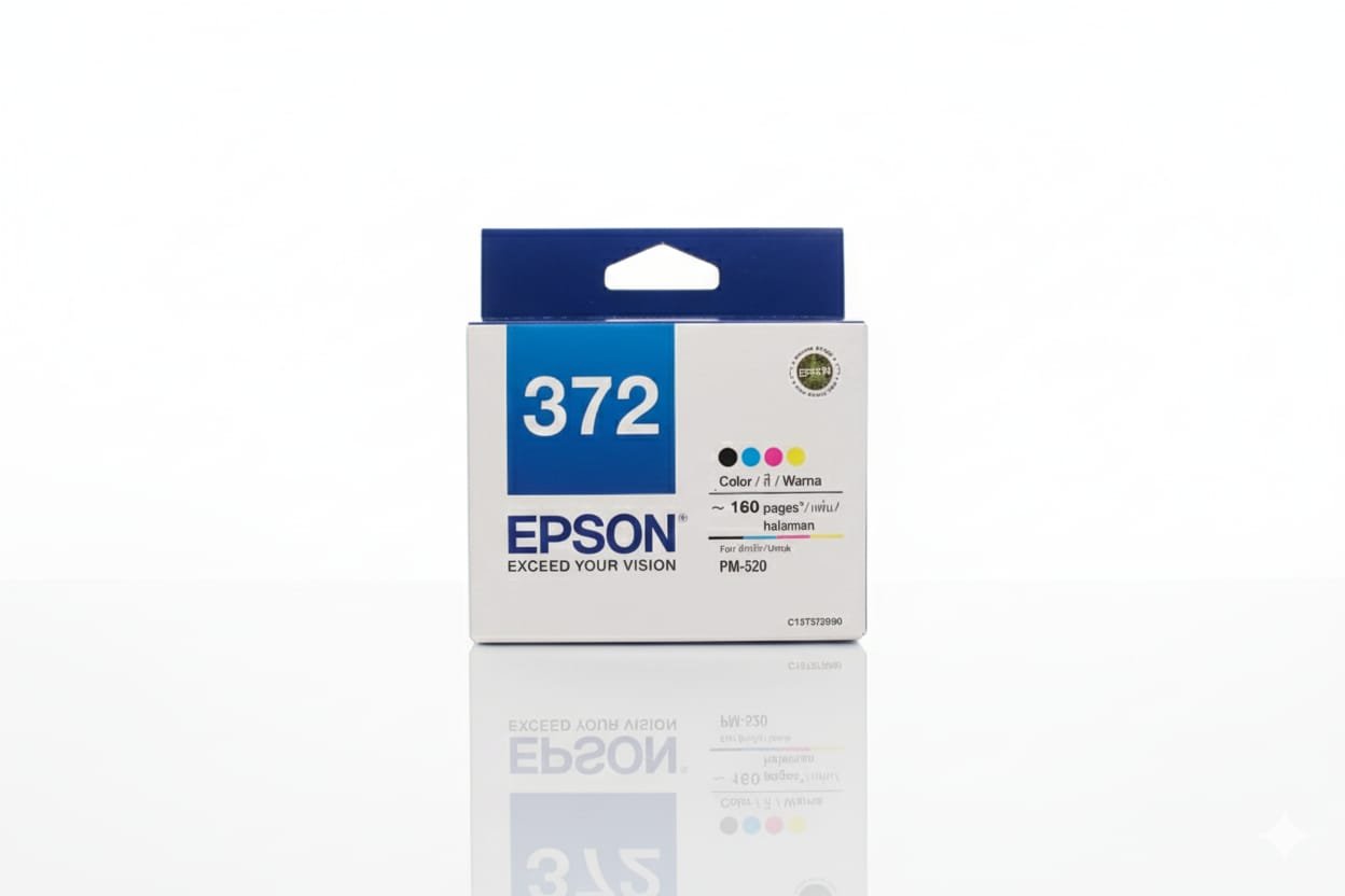 This is a 4-color (CMYK) dye-based ink cartridge compatible with the Epson PM-520 / PM520 photo printer series — or other printers requiring the “372 / T372 / C13T372090” cartridge.