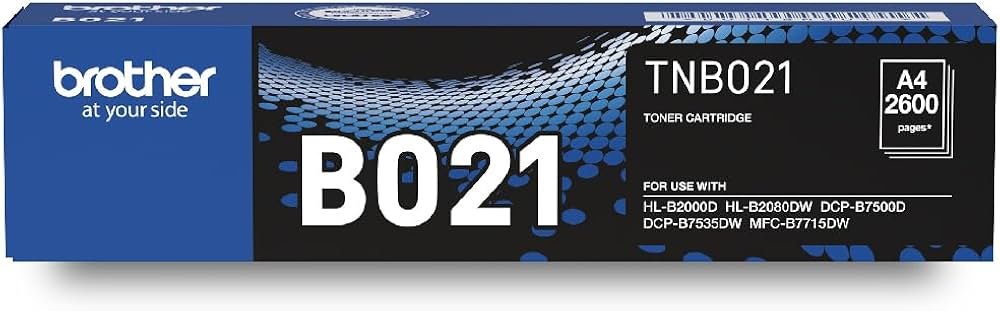 Brother B021 Original Toner is a genuine Brother black laser toner cartridge designed for select Brother monochrome laser printers. It delivers sharp black text and graphics with a high page yield, making it ideal for both office and home printing needs. This original toner cartridge complies with ISO/IEC standards and ensures consistent performance with minimal downtime. It’s easy to install and engineered for reliable, high-quality print output, maintaining optimal printer performance and longevity. Compatible with multiple Brother HL-series and DCP/MFC-series models with a typical yield of around 2600 pages (ISO/IEC 19752).