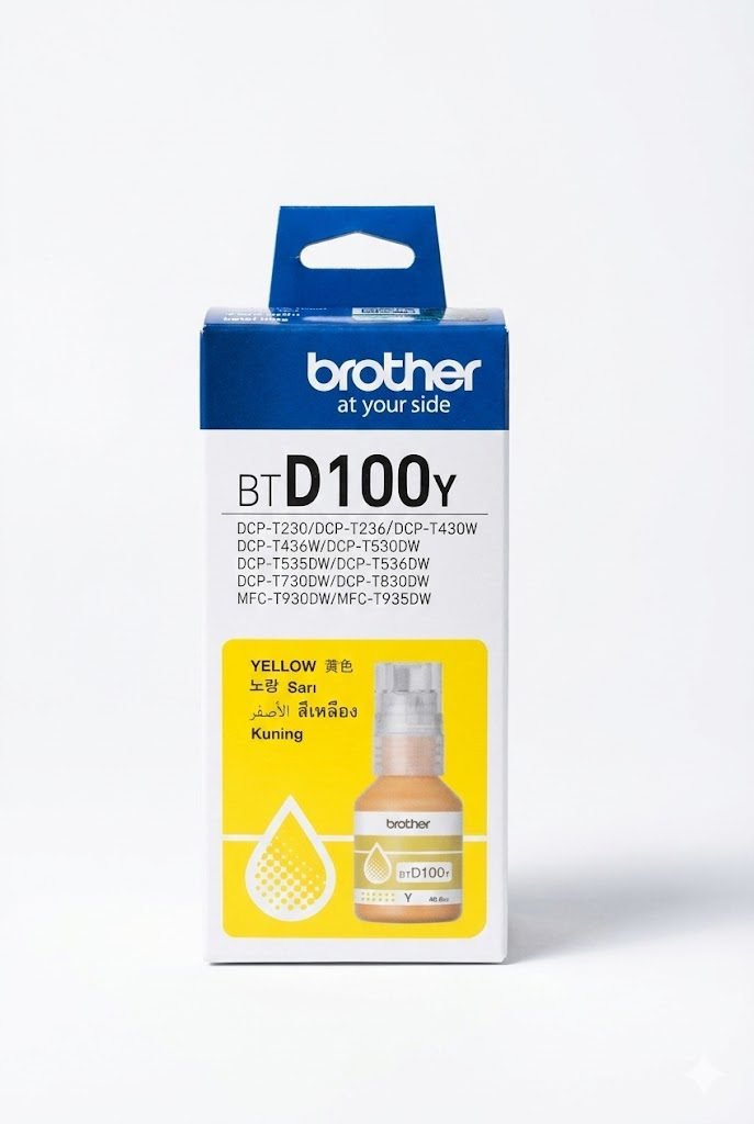 High‑yield YELLOW ink — delivers approximately 5,000 pages per bottle. Ink‑tank system compatible — designed for use with various Brother ink‑tank printers (e.g., DCP‑T430W, DCP‑T530DW, DCP‑T730DW, MFC‑T930DW, etc.).Dye‑based liquid ink — provides vivid, crisp colour printing (text and images) with reliable consistency.Easy refill / spill‑free design — simple to install and refill printer ink tanks, reducing mess and downtime. Genuine supply quality — using original Brother ink helps maintain print quality, colour accuracy and avoids smudges or printer issues.