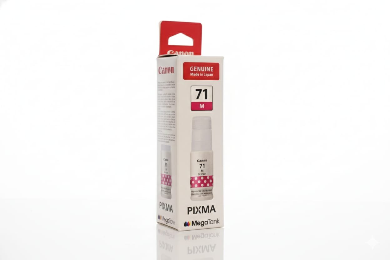 The Canon GI‑71 Magenta is a dye‑based magenta ink bottle designed for use with selected Canon PIXMA G‑series ink‑tank printers (e.g. G1020, G2020, G2021, G2060, G3020, G3021, G3060, and others).The magenta ink produces rich, vibrant magenta tones suitable for high‑quality colour printing, such as photos, graphics, marketing materials, or documents needing vivid colors.