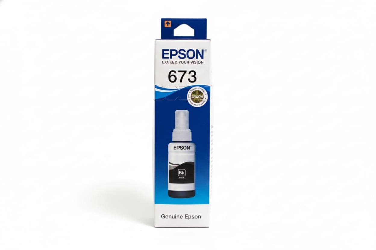 Epson 673 Black Ink is a high-quality, genuine dye-based ink specifically designed for Epson EcoTank and InkTank printers. It delivers sharp, crisp, and smudge-resistant black text ideal for everyday printing needs such as documents, reports, school work, and office materials. The ink is formulated for consistent performance, long-lasting prints, and smooth operation without clogging. With its high page yield and easy-to-use bottle design, Epson 673 Black Ink ensures economical and reliable printing for both home and office environments.