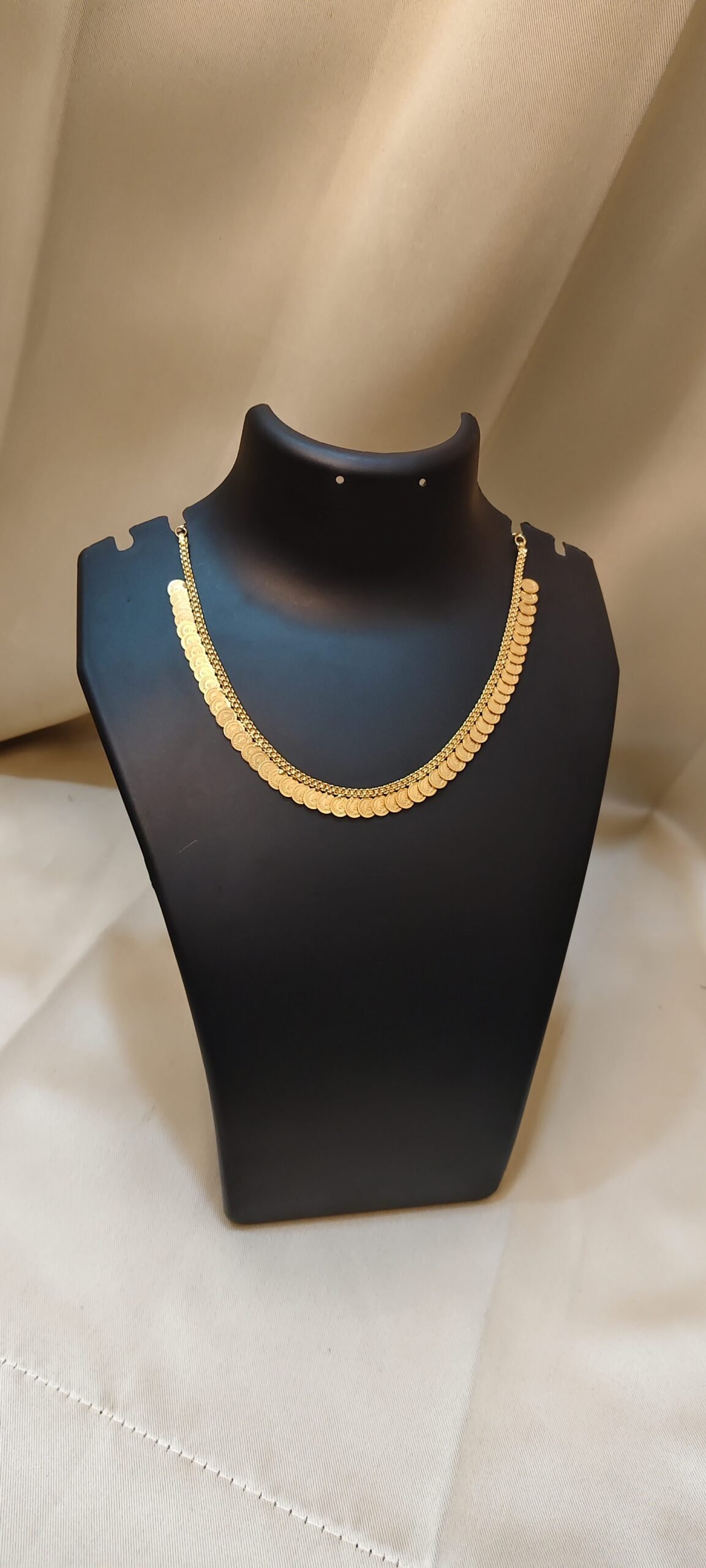 imitation Gold-tone coin necklace featuring layered round discs in a classic, elegant design.