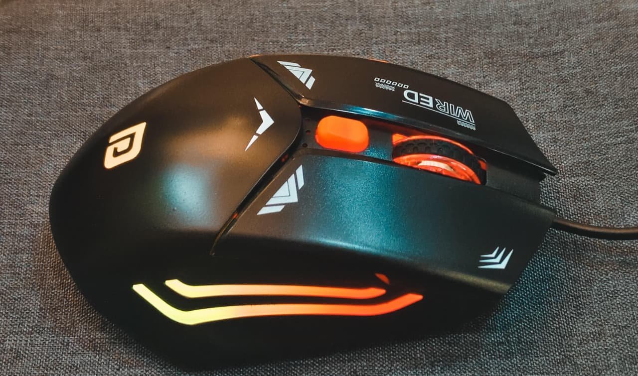 It uses an optical sensor and supports adjustable DPI levels: 1000 / 1600 (default) / 3200 / 6400 DPI — which lets you fine‑tune pointer sensitivity for gaming or precision tasks.