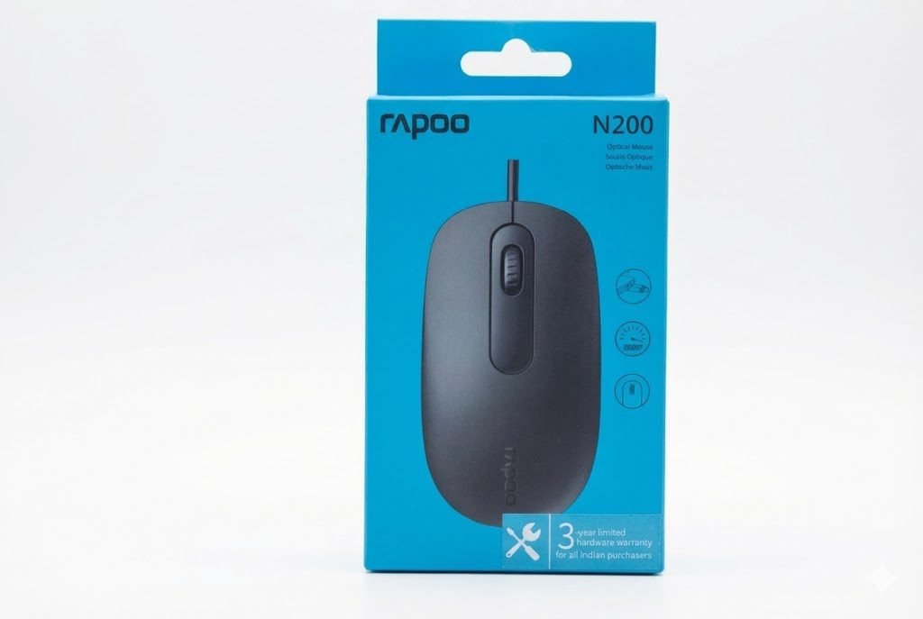 Rapoo N200 is a reliable wired USB optical mouse featuring a 1600 DPI sensor, smooth scrolling, and an ambidextrous full-size design. It offers plug-and-play convenience, precise tracking, and durable performance for everyday computing.