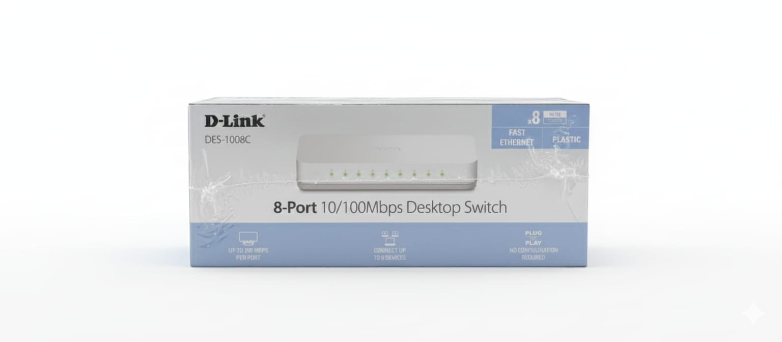 D-Link 8-Port 10/100Mbps Network Switch offers reliable, high-speed wired connectivity for home and small office networks. It features plug-and-play setup, compact design, and stable data transfer for smooth networking.