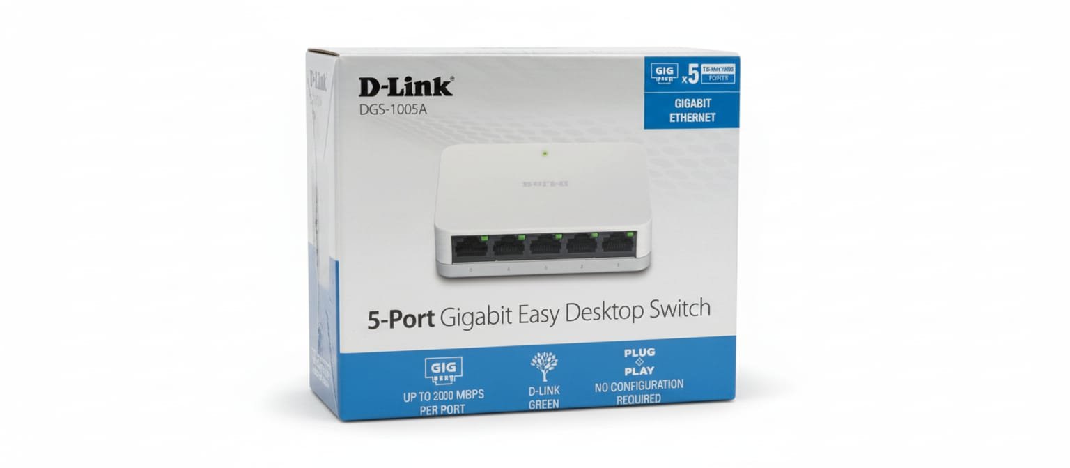 The D-Link 5-Port Gigabit Easy Desktop Switch (10/100/1000 Mbps) is a compact, high-performance network switch designed for home and small office use. It features five auto-sensing Gigabit Ethernet ports that deliver fast data transfer speeds for seamless streaming, gaming, and file sharing. With plug-and-play installation, silent operation, and energy-efficient technology, this switch ensures reliable connectivity without configuration. Its sturdy, lightweight desktop design makes it ideal for expanding networks quickly and easily.