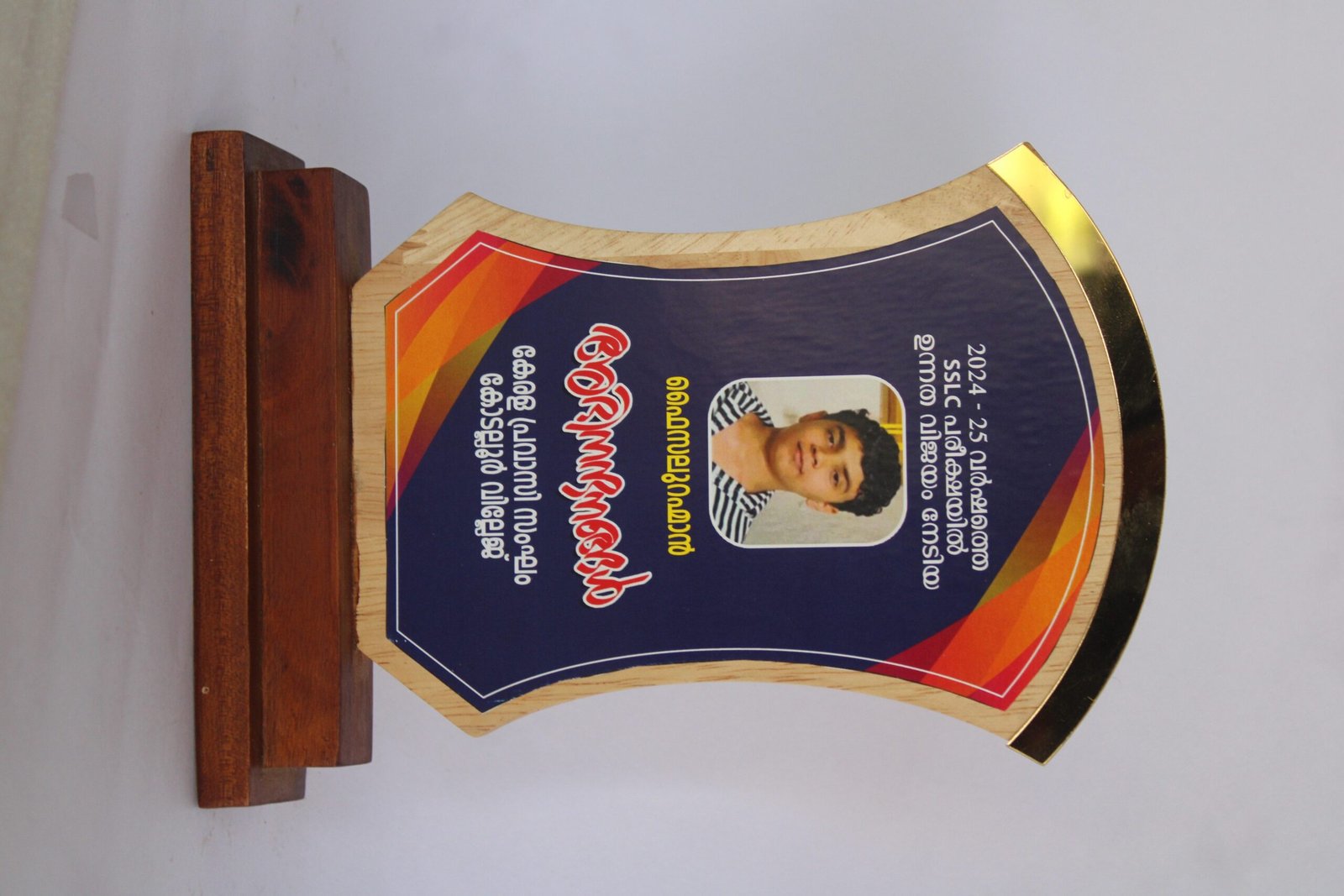 A personalized wooden award plaque with a printed photo is a custom-made recognition item crafted from wood, featuring a high-quality printed photograph, along with engraved or printed text such as a name, title, achievement, or message.