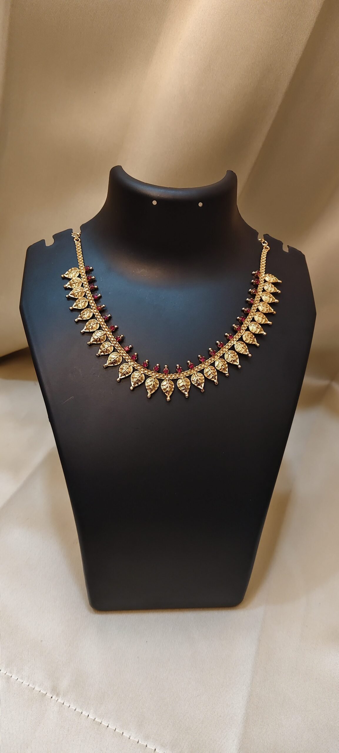 A mango/leaf motif necklace (often called “Maanga Maalai” or leaf-pattern temple necklace)