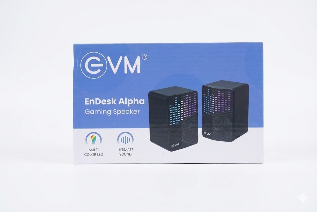 The EVM EnDesk Alpha Gaming Speaker delivers powerful stereo sound with deep bass, vibrant RGB lighting, and a compact desktop design. Perfect for gaming, movies, and music, it offers clear audio output and easy plug-and-play connectivity via USB and AUX.