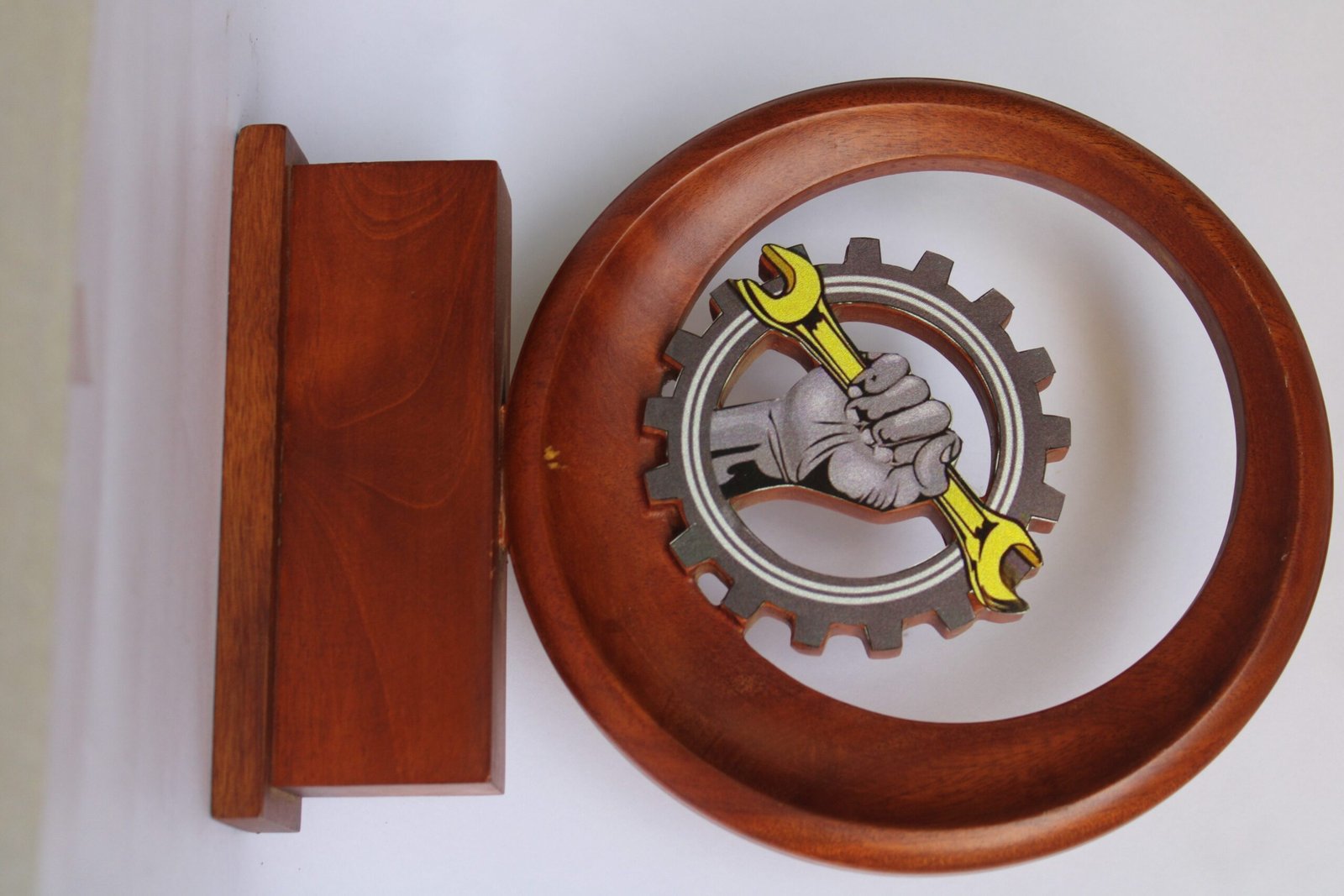 + Free ShippingThis is a wooden engineering award trophy designed to represent strength, skill, and technical excellence. The trophy features a smooth polished wooden base with a circular wooden frame.
